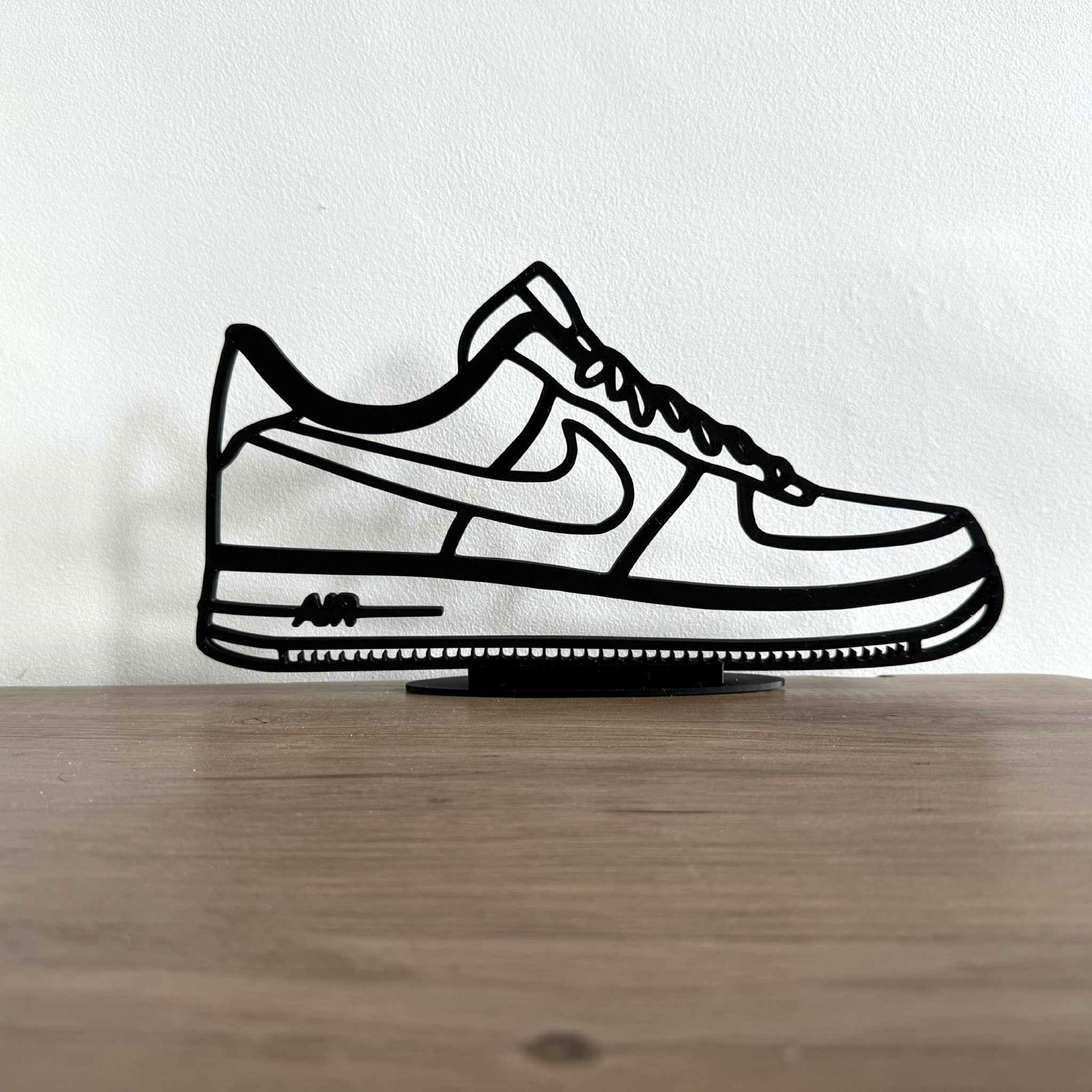 Celebrate sneaker history with the Air Force 1 Silhouette a bold outline design of one of the most iconic sneakers of all time. Measuring 25cm long and scaled true to size with a 0.5cm thickness, Its clean black contours highlight the legendary shape in a minimal yet powerful way, making it the perfect statement piece for sneaker décor. Whether placed on a shelf, desk, or studio space, this sneaker silhouette turns your love for sneakers into modern art.