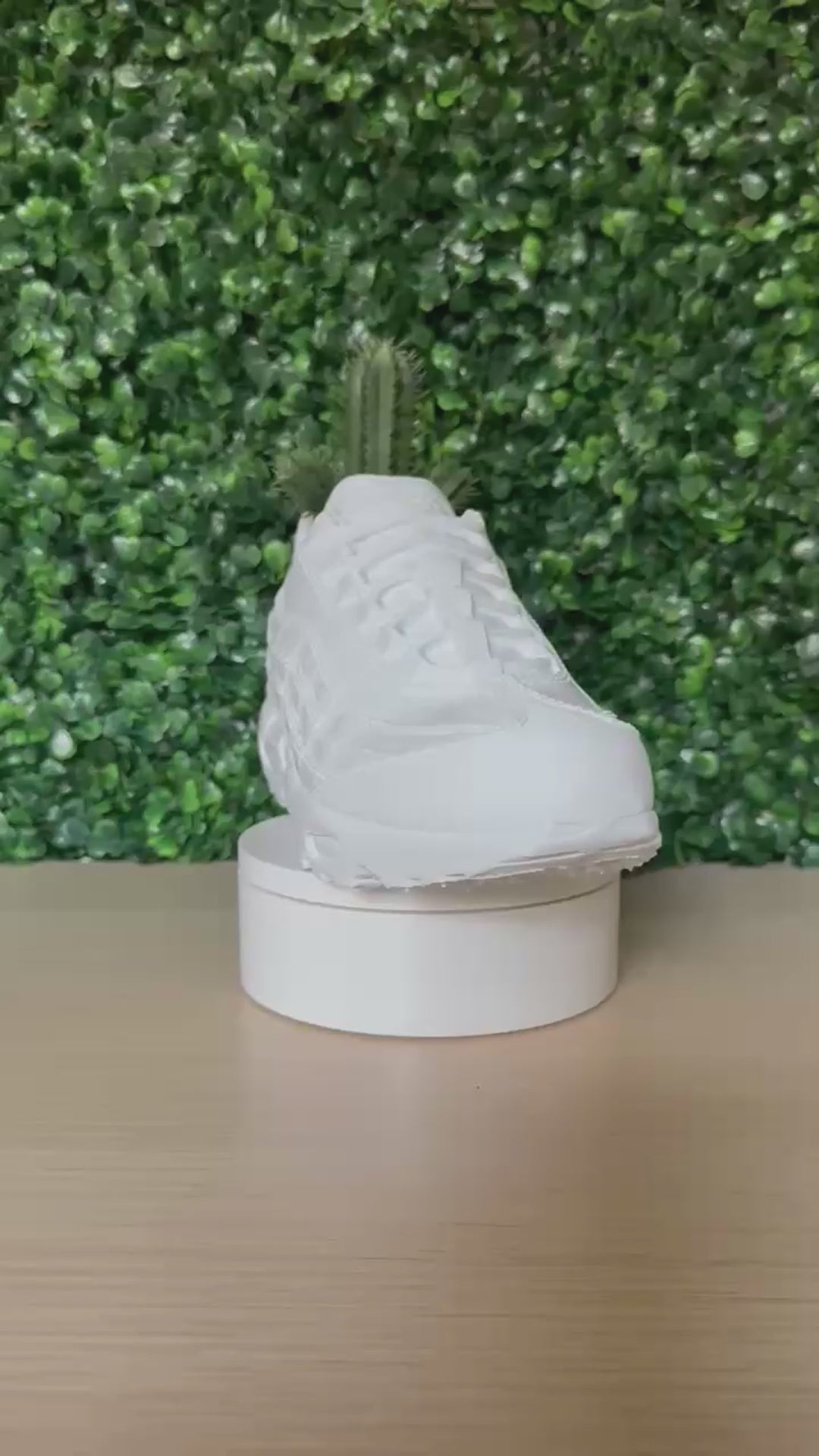 Elevate your sneaker obsession with this one-of-a-kind 3D printed sneaker planter, complete with a realistic artificial plant.