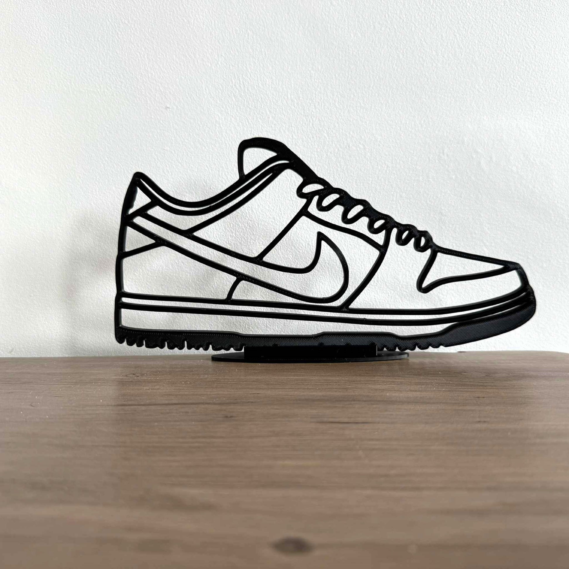 Celebrate sneaker history with the Dunk Low Silhouette a bold outline design of one of the most iconic sneakers of all time. Measuring 25cm long and scaled true to size with a 0.5cm thickness, Its clean black contours highlight the legendary shape in a minimal yet powerful way, making it the perfect statement piece for sneaker décor. Whether placed on a shelf, desk, or studio space, this sneaker silhouette turns your love for sneakers into modern art.