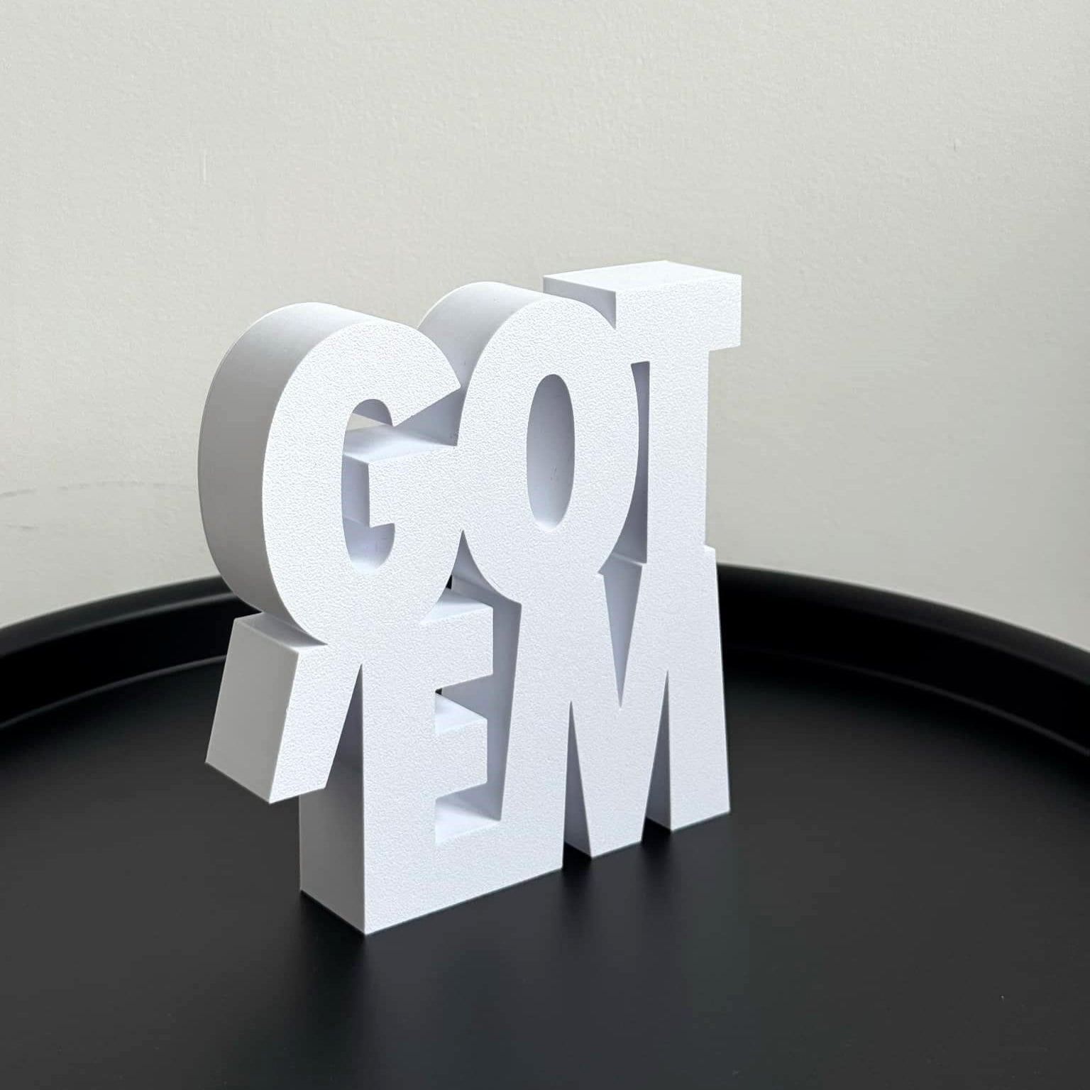Elevate your sneaker obsession with this one-of-a-kind 3D printed "GOT 'EM" free-standing art piece, available in two sizes — 10cm (4 inches) or 15cm (6 inches).