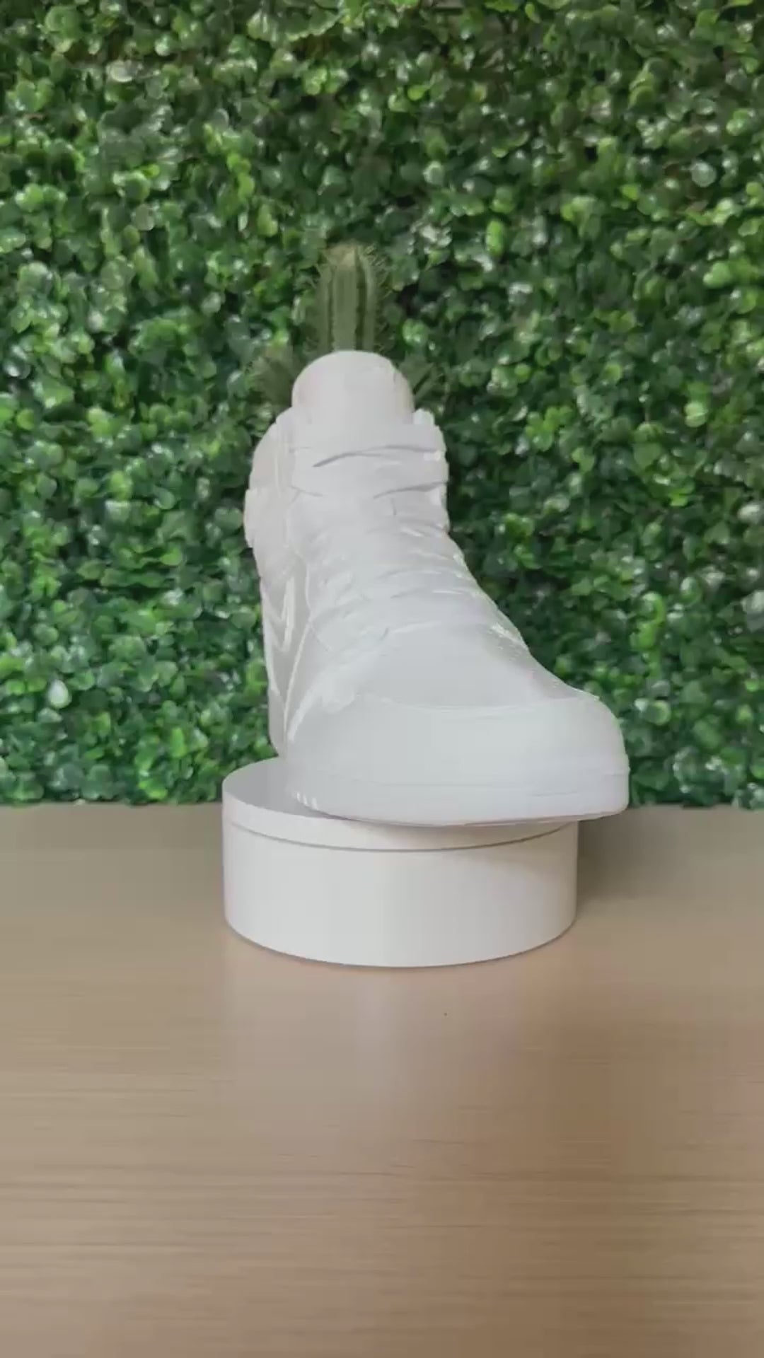 Elevate your sneaker obsession with this one-of-a-kind 3D printed sneaker planter, complete with a realistic artificial plant.